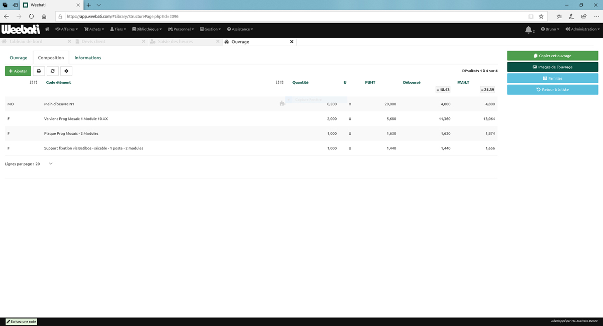 Créer et sauvegarder la composition d’un ouvrage récurent afin de l’intégrer simplement dans le devis en tapant quelques lettres.