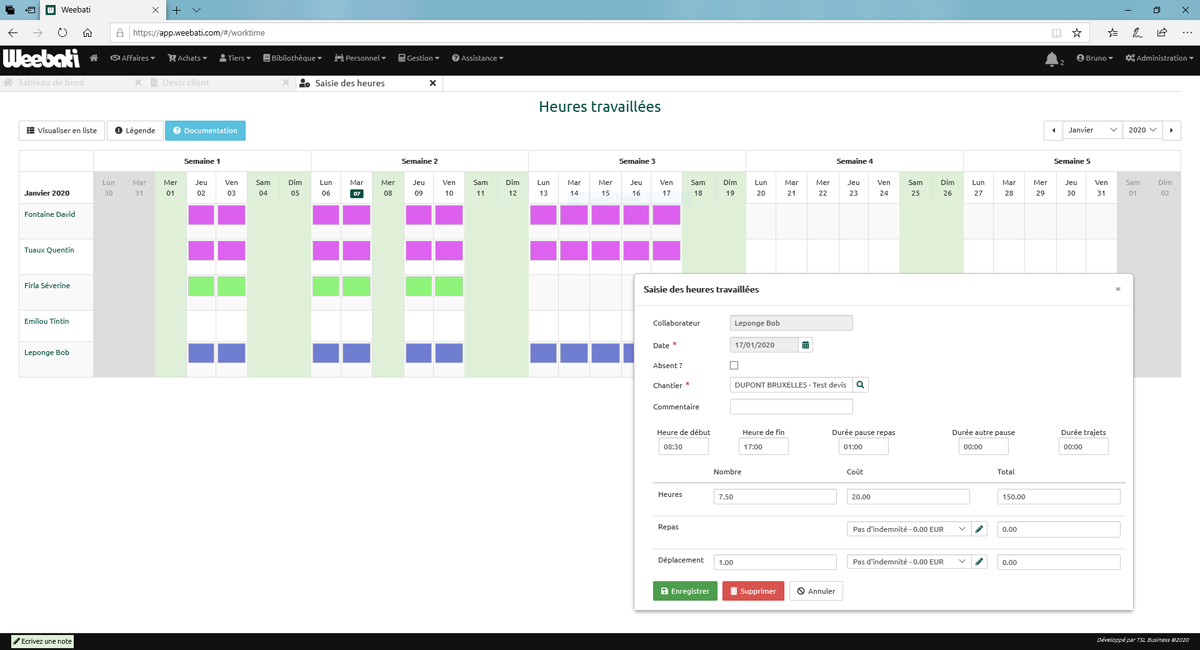 Saisir les heures prestées des ouvriers sur les chantiers.